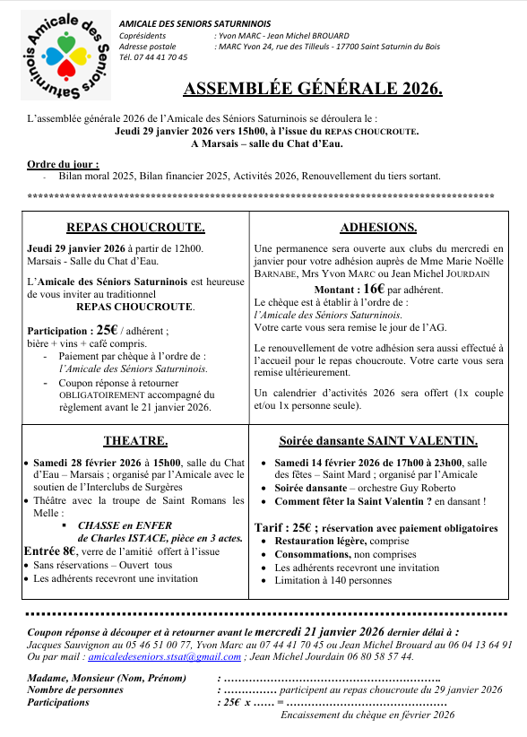 L'Amicale des Seniors Saturninois fait son Assemblée Générale